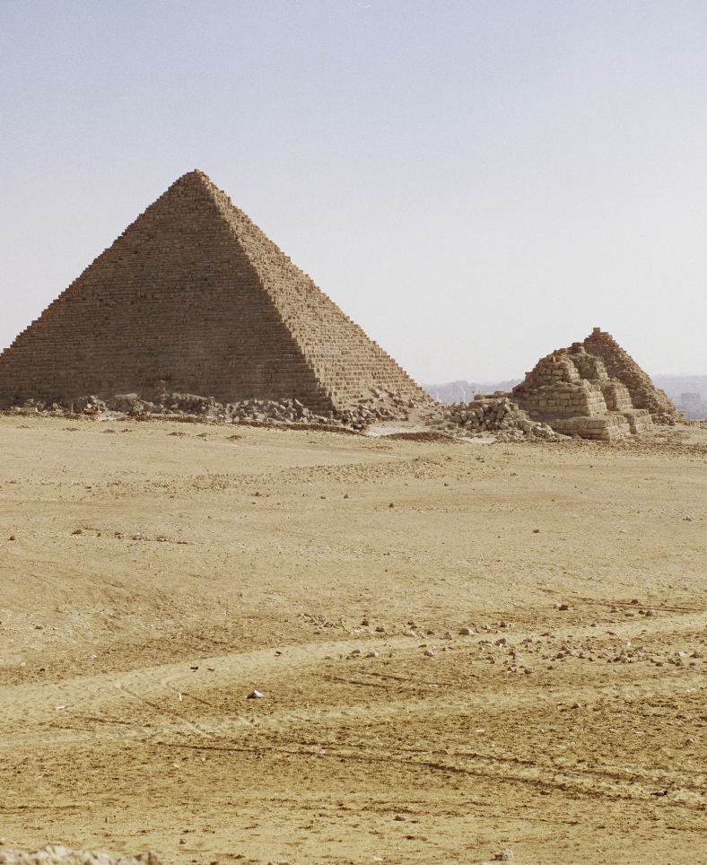 The air carries a warmth that softens every edge, as if time itself had slowed beneath the pale desert sky. In the distance, the pyramids stand with an unspoken authority, their silhouettes unchanged by centuries.